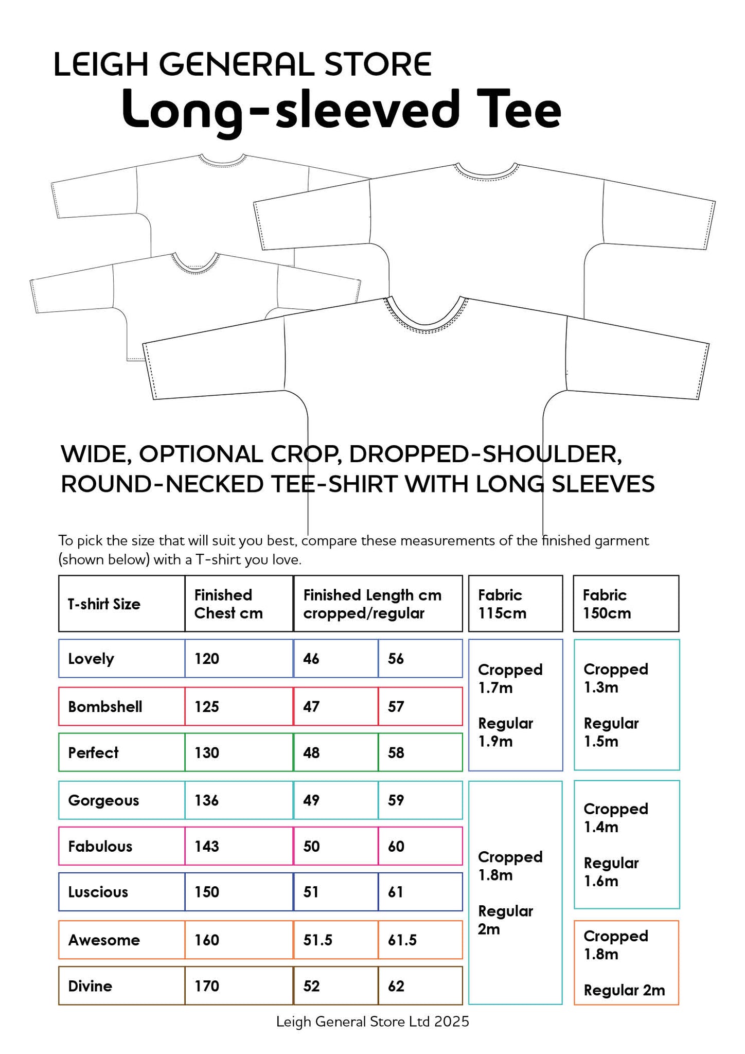 LGS have designed a set of beginner patterns which are a versatile fit - compare a similar tee-shirt you love to the pattern to decide which size will suit you best.