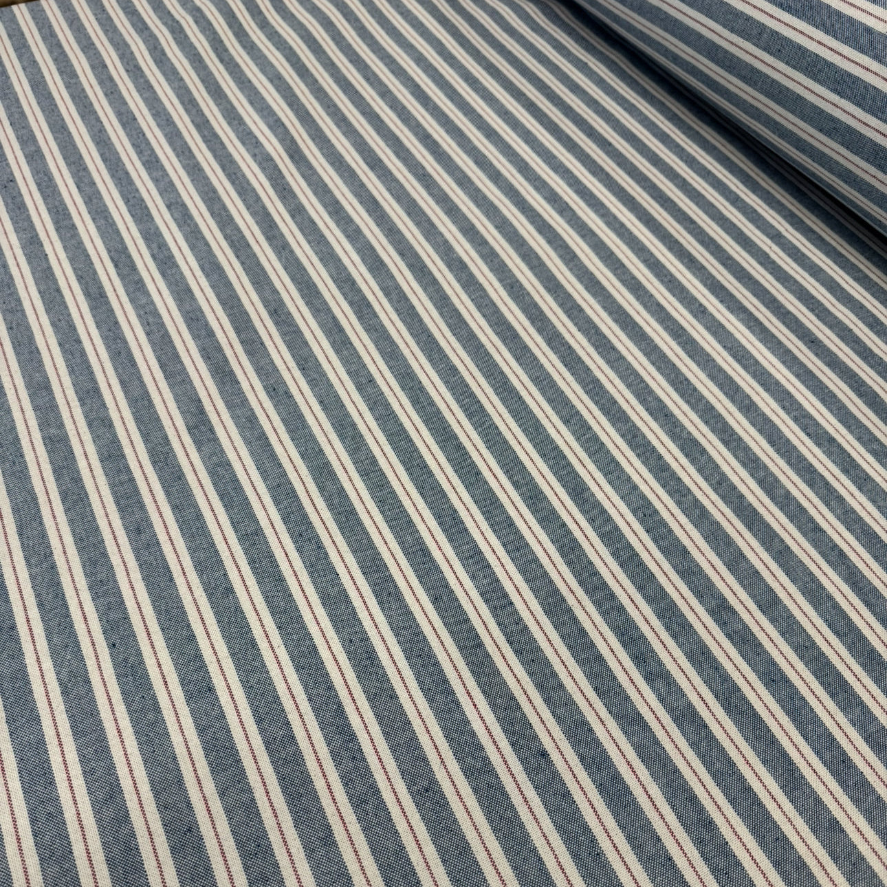 - BLUE & RED TICKING STRIPE