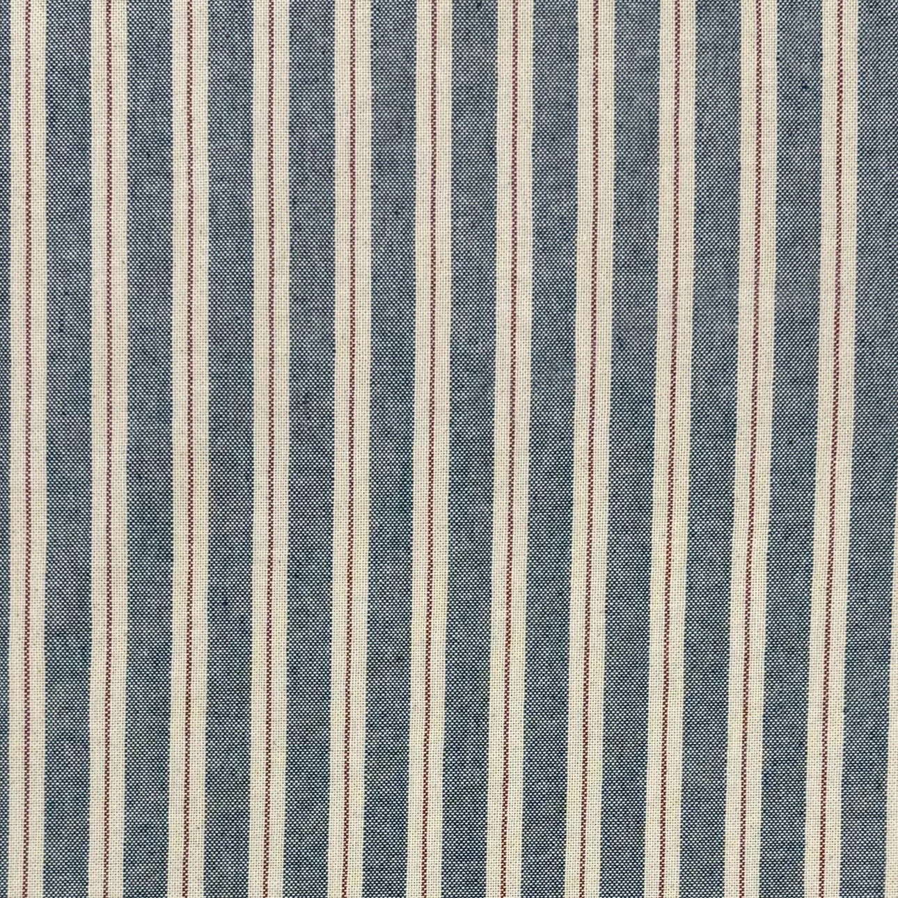 COTTON STRIPE TICKING - 108" EXTRA WIDE - DENIM BLUE & RED