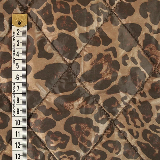 Add a touch of bold style to your projects with this striking leopard print quilted puffer fabric. Featuring a rich brown animal print design, this fabric brings a fashionable yet timeless edge to your makes. The quilted texture adds structure and comfort, making it ideal for jackets, gilets, bags to name a few.
